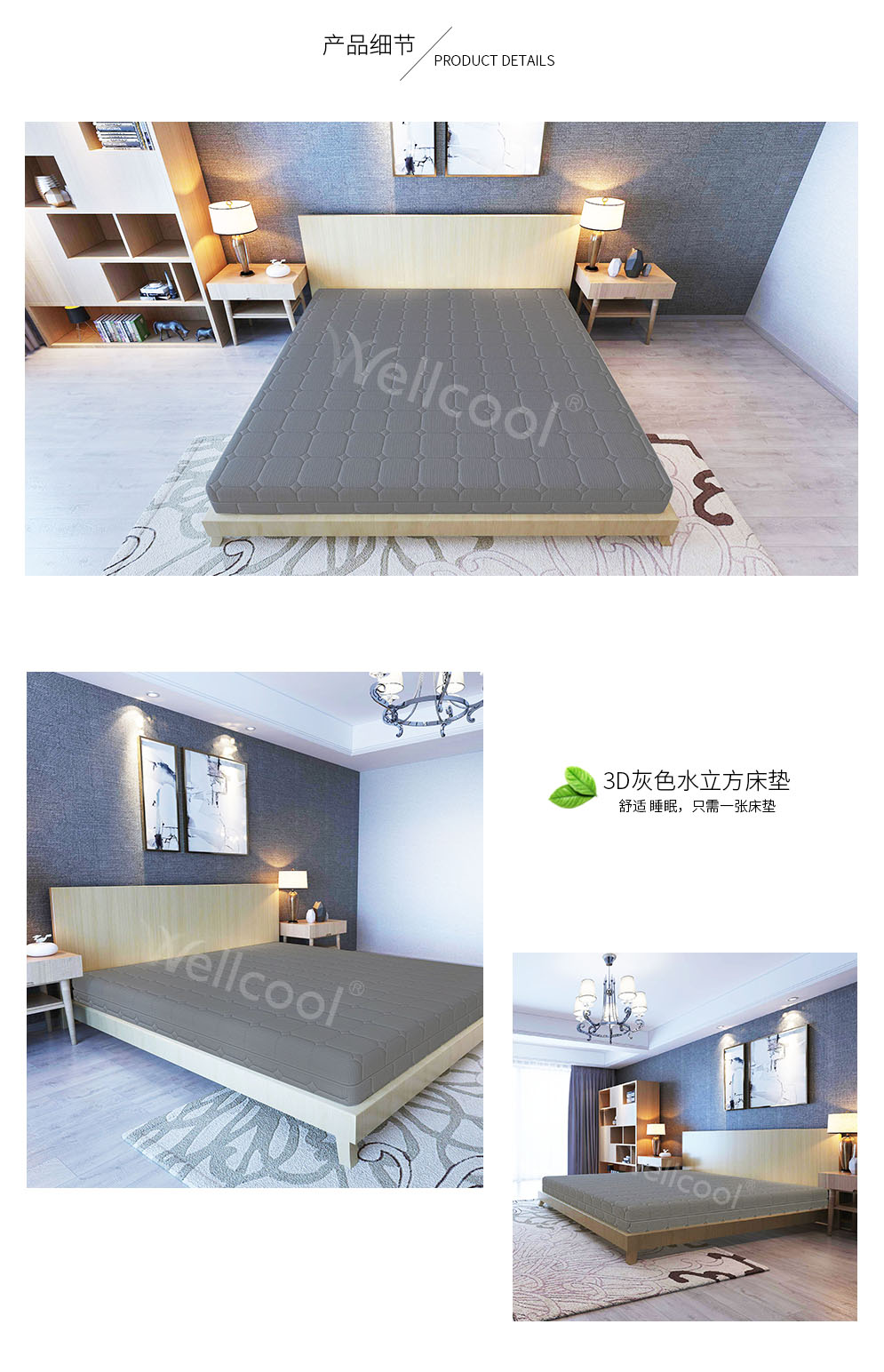 特征: 1.聚酯纤维原材料,环保材料,可分解回收,健康环保 2.可水洗床垫,健康生活 3.三维立体中空结构 循环透气,通风排湿 4.贴合身体曲线,充分承托受力点 5.舒压,平衡承托,缓解人体压力 6.软硬度适中,享受高质量睡眠 |