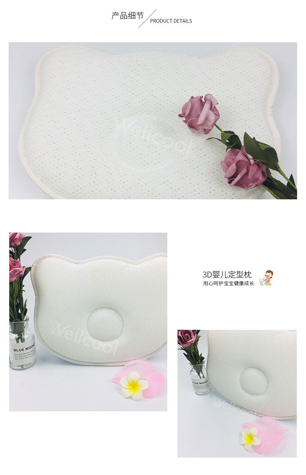 | 品名:环保舒适的3d婴儿定型枕 |