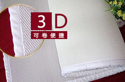 3D弹性软垫,采用中空立体结构, 高弹不易变形,方便卷起存储或携带外出。