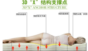 人不管胖瘦腰臀部位都是比较重的,如果床垫的支撑能力不够就会导致腰臀部位过分下陷,容易引起脊椎变形。现代人有80%的人都有腰酸背疼以及腰椎方面的疾病,3D床垫它能让一张床垫的支撑点达到140万个这样的神奇效果,完全贴合你的身体而不下陷。